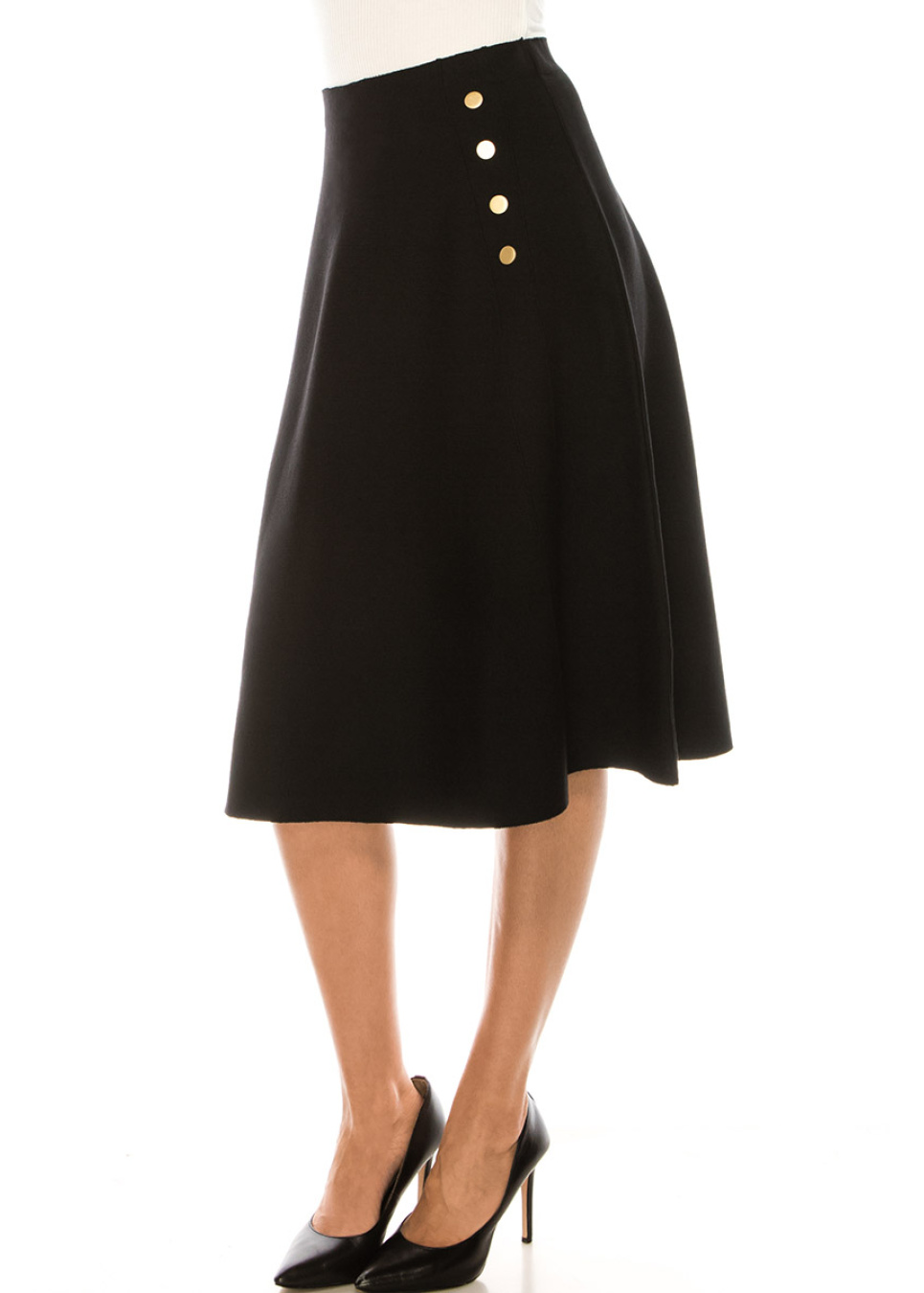 Stylish Black Midi Skirt With Buttons Details