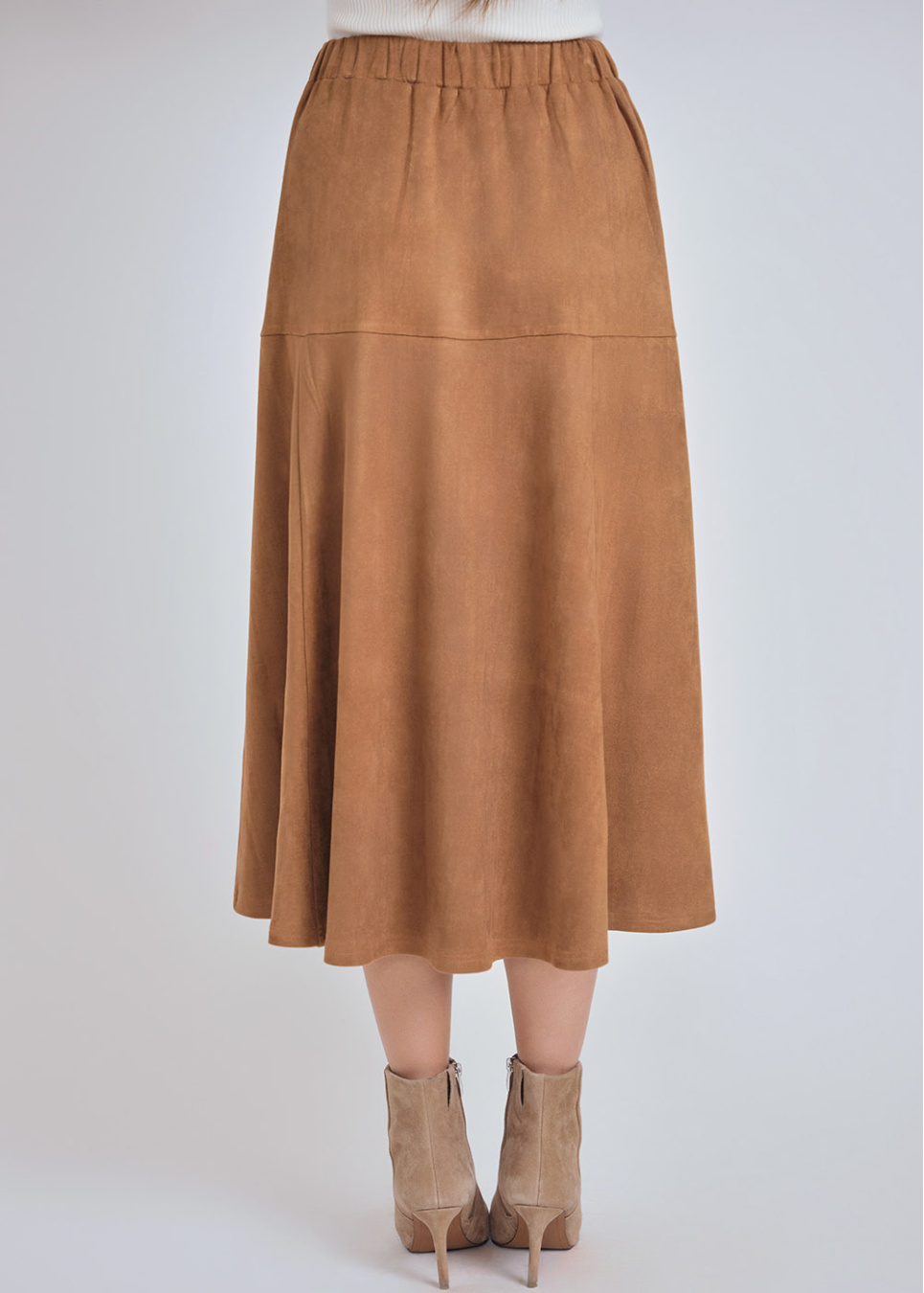 Sunlit Camel Suede Midi Skirt