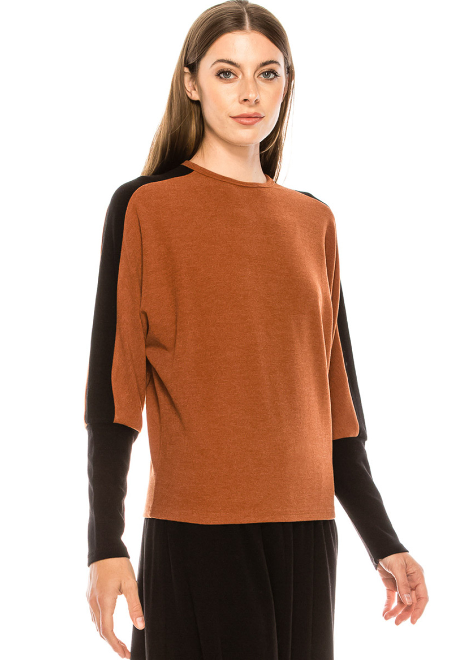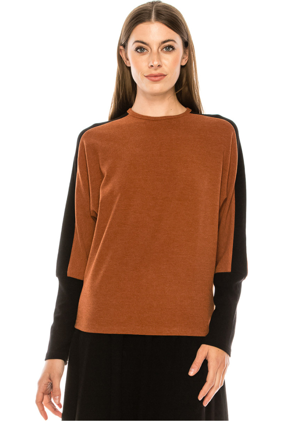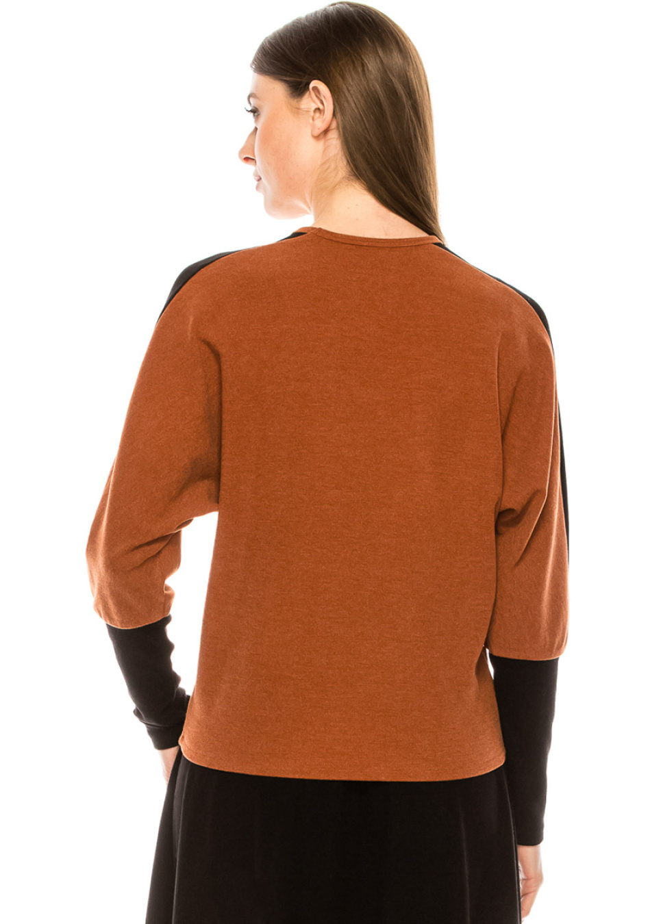 Color block long sleeve T-shirt with high cuffs (Rust)