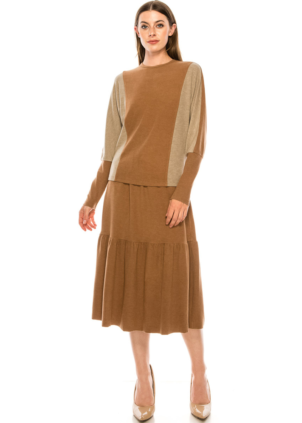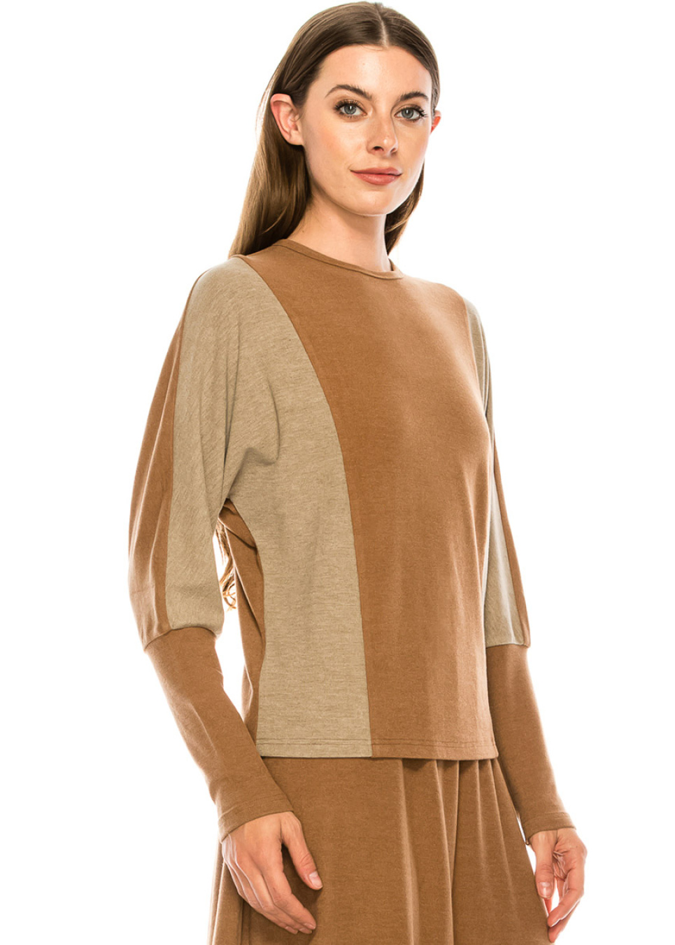 Femininity for every day! You can style this T-shirt in many styles, depending on your mood. It is comfortable to wear and versatile to combine. The beautiful details, such as color blocks and high cuffs on the sleeves, make it a comfortable alternative to blouses.