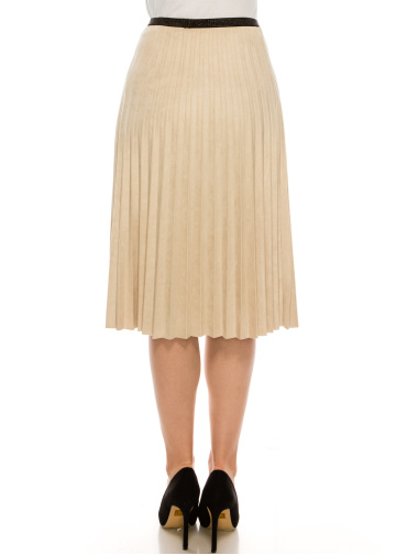 - This pleated skirt is so flattering. We designed this skirt in a way that the it would lay flat on the stomach then starts pleating after.