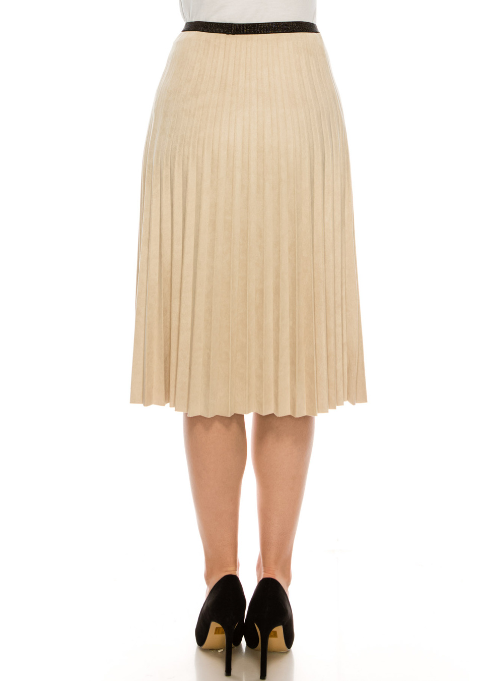 - Tan suede pleated skirt