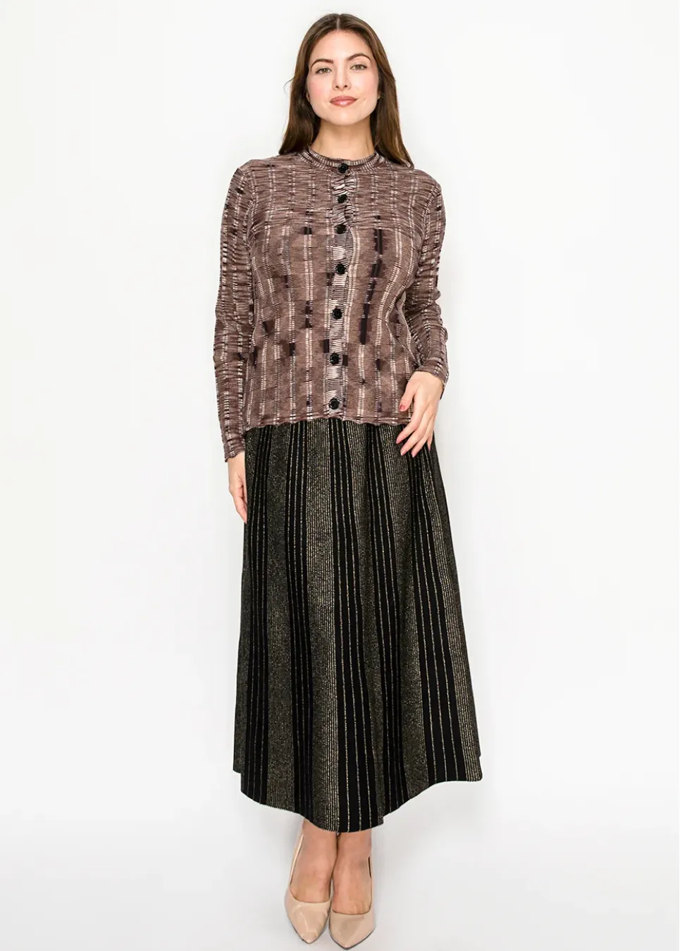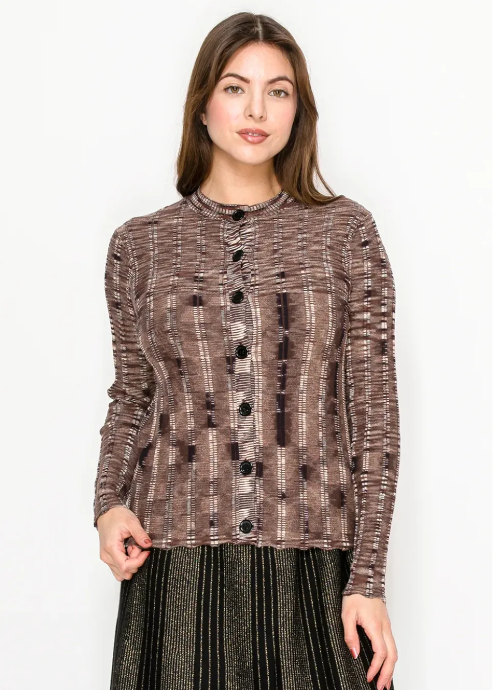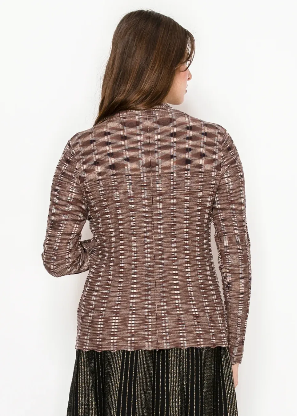 A modern take on the classic cardigan. With a graphic texture, clean round neckline, and soft stretch, this piece is made to stand out — and layer easy.