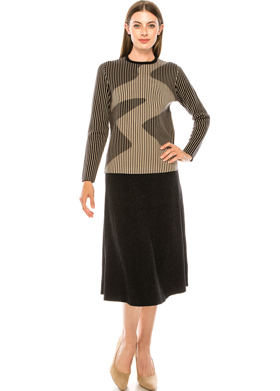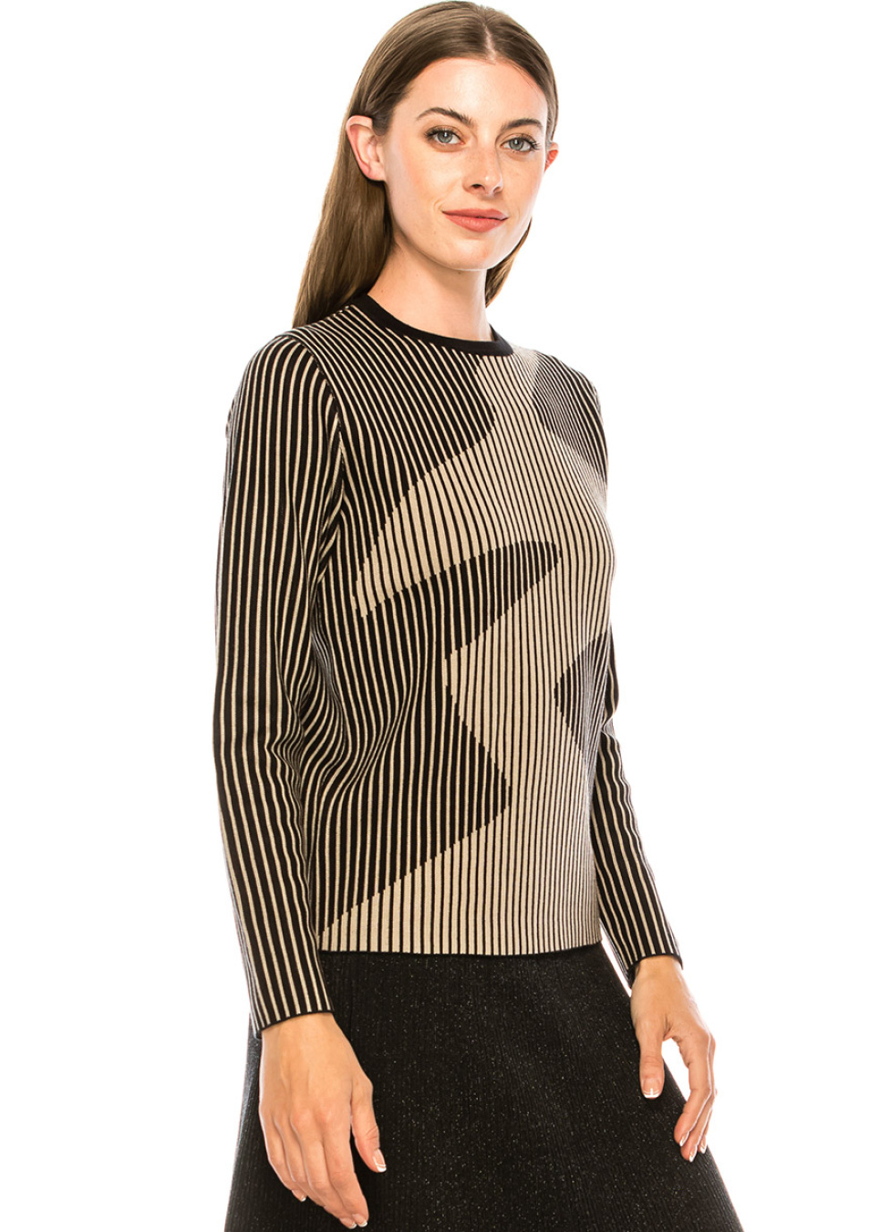 Camel & Black Striped Ribbed Sweater
