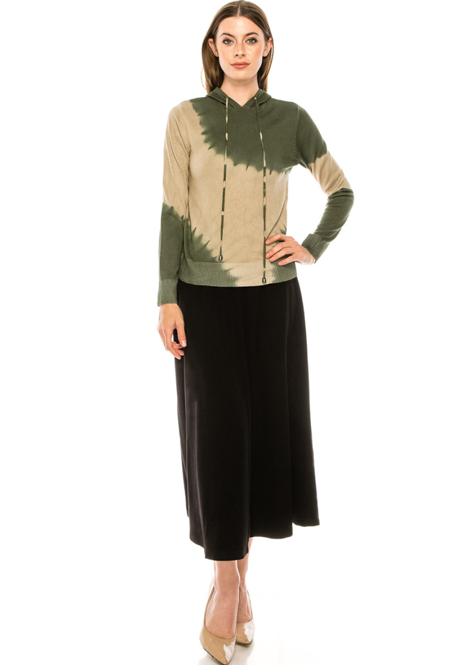 Tie-dye hoodie sweater in olive