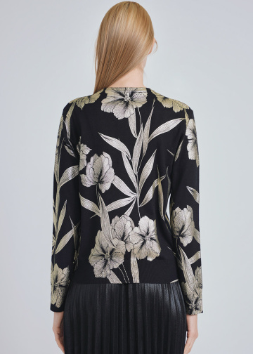 Timeless Beauty: Black Knit with Golden Floral Impressions