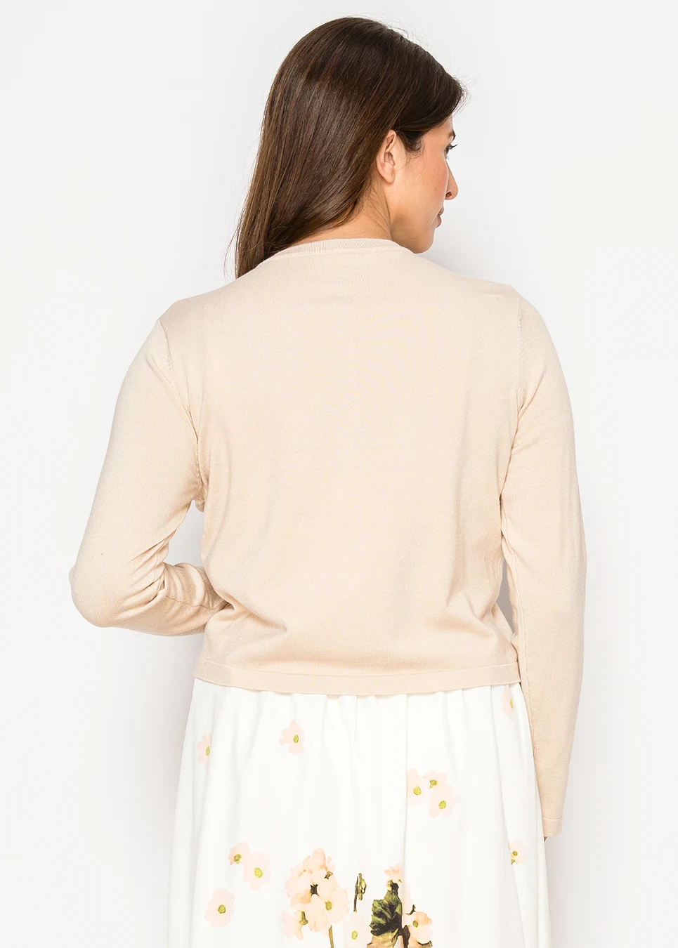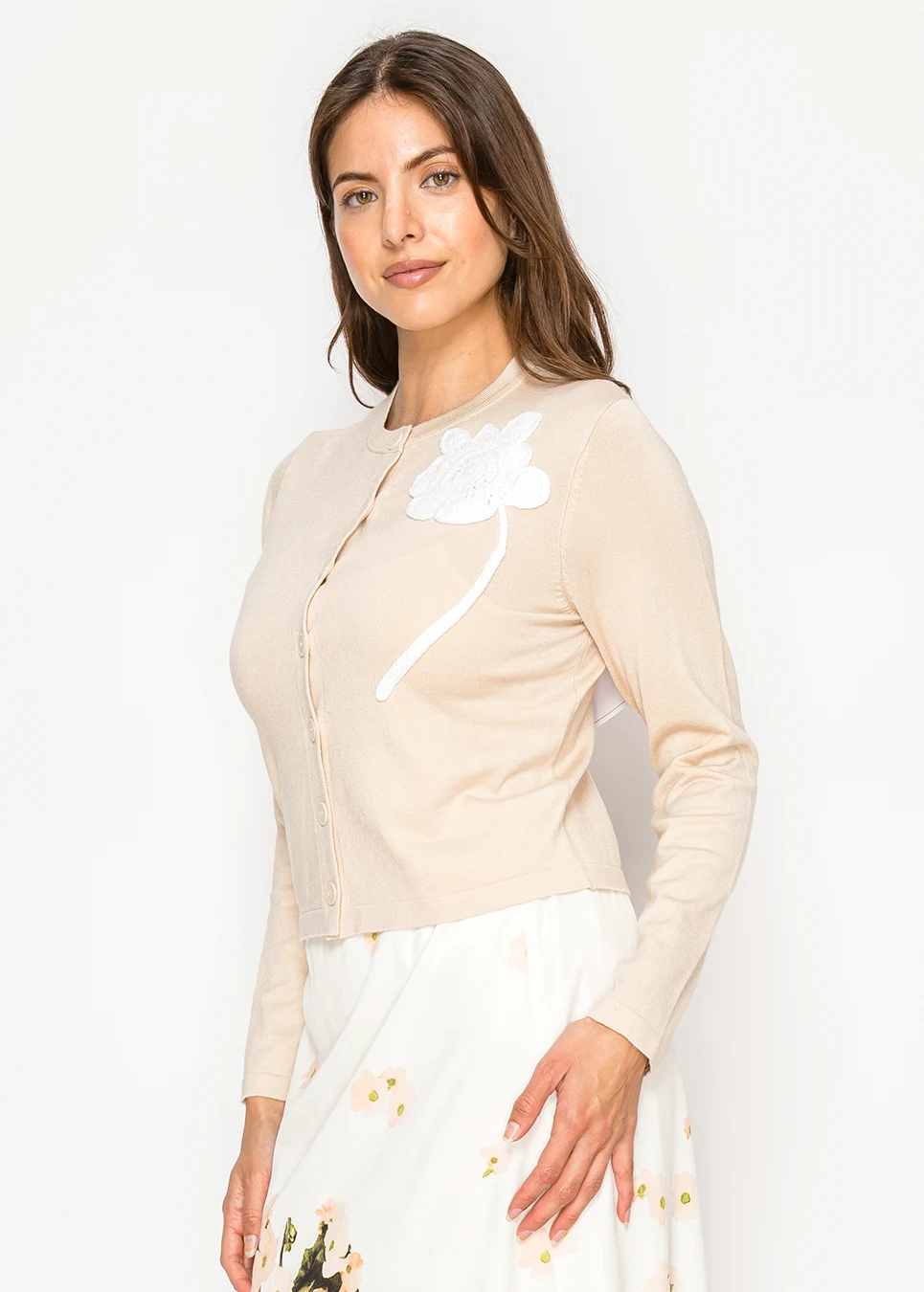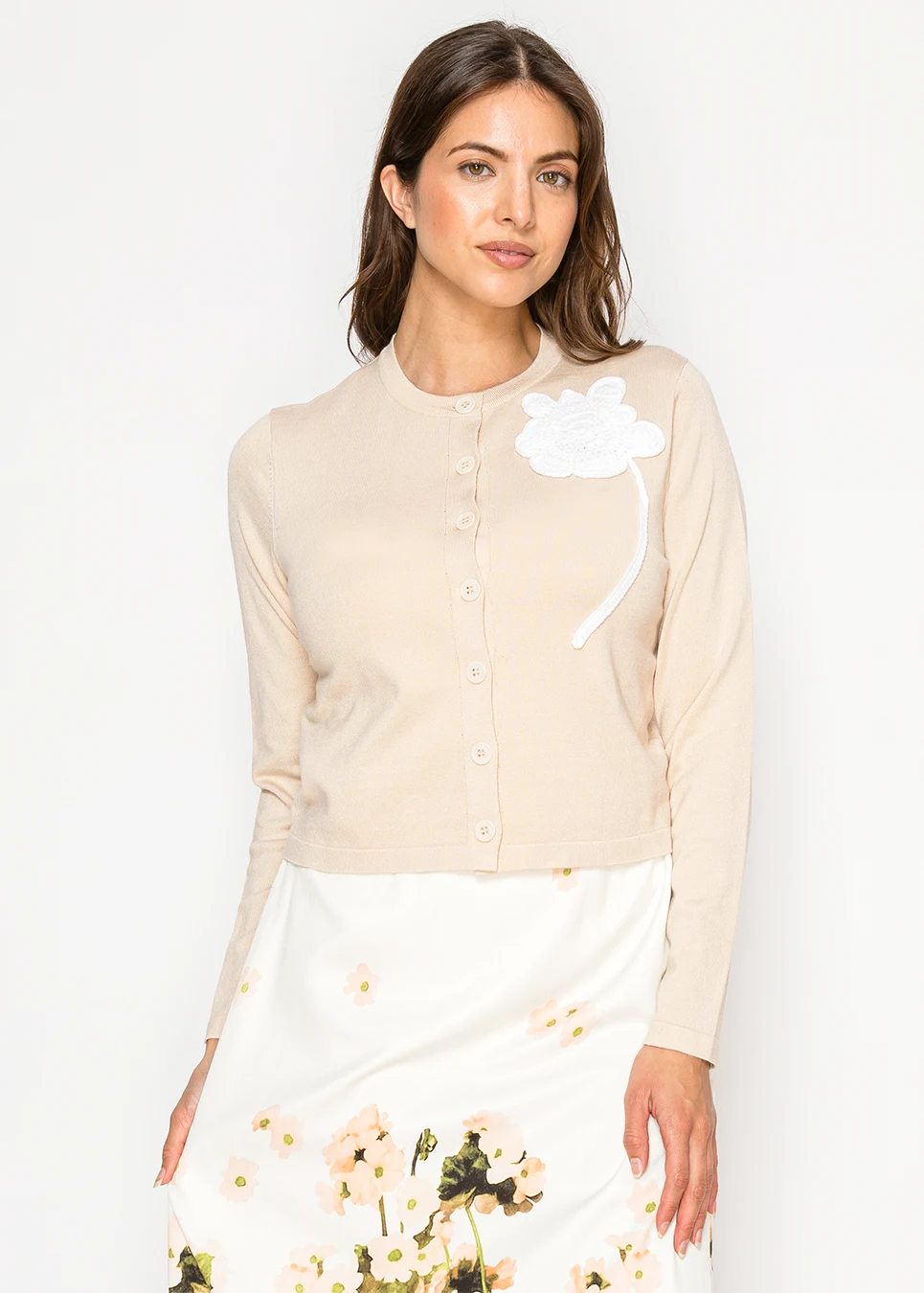 A modest cardigan designed for comfortable coverage and everyday wear. The soft floral accent adds beauty while keeping the overall look calm and appropriate.