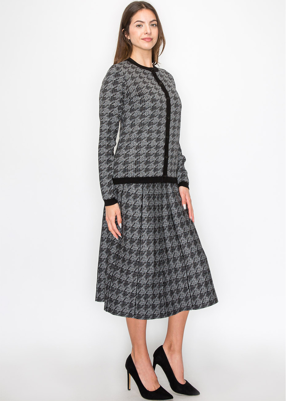 Timeless Houndstooth Knit Cardigan