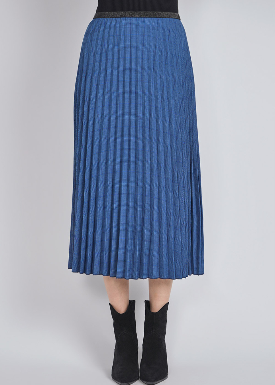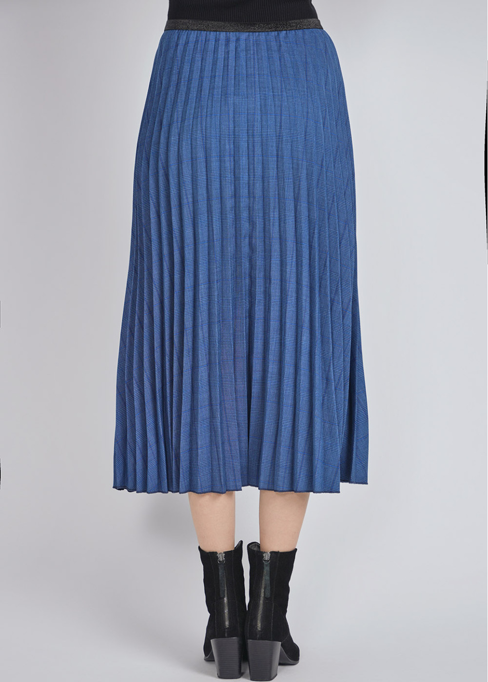 Timelessly Trendy Blue Pleated Plaid Midi