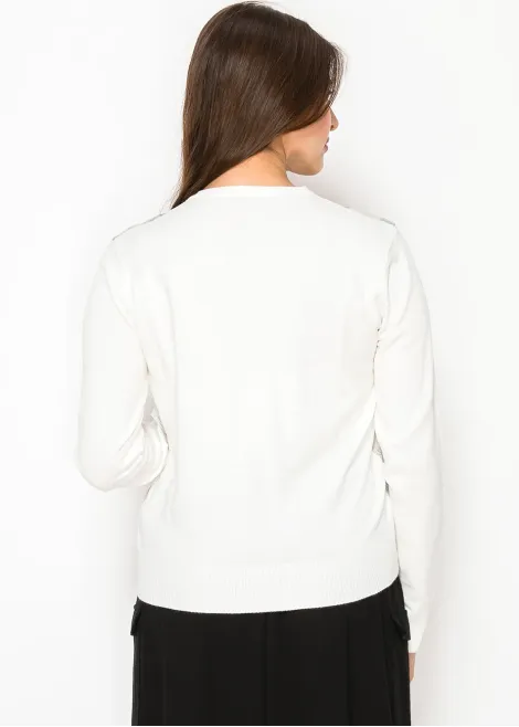 Cream Sweater with Graphic Knit Design