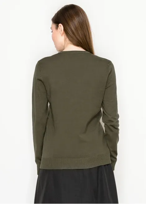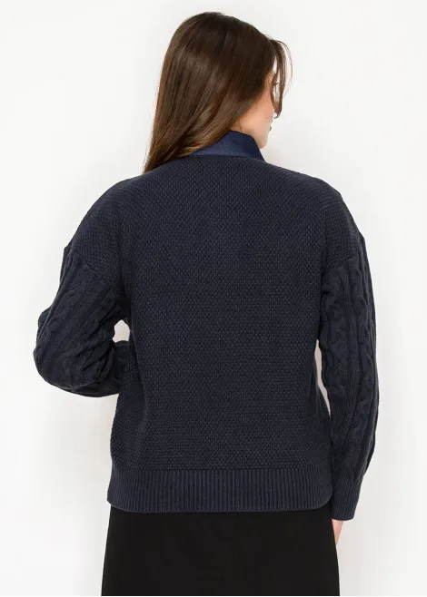 Olive Cable Knit Polo Sweater with Contrast Collar
