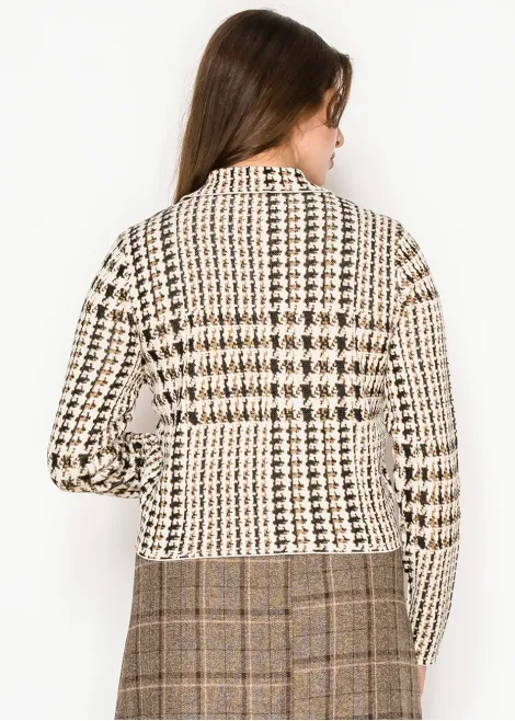 Sand Beige Sweater with Lurex Stripe Sleeves
