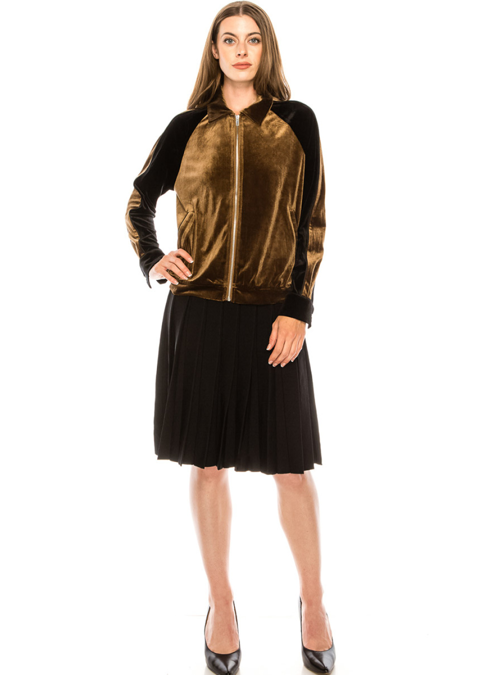 Two-colored velvet cardigan