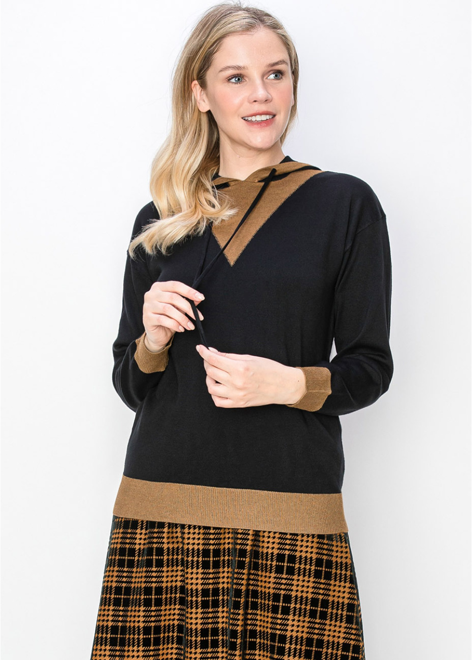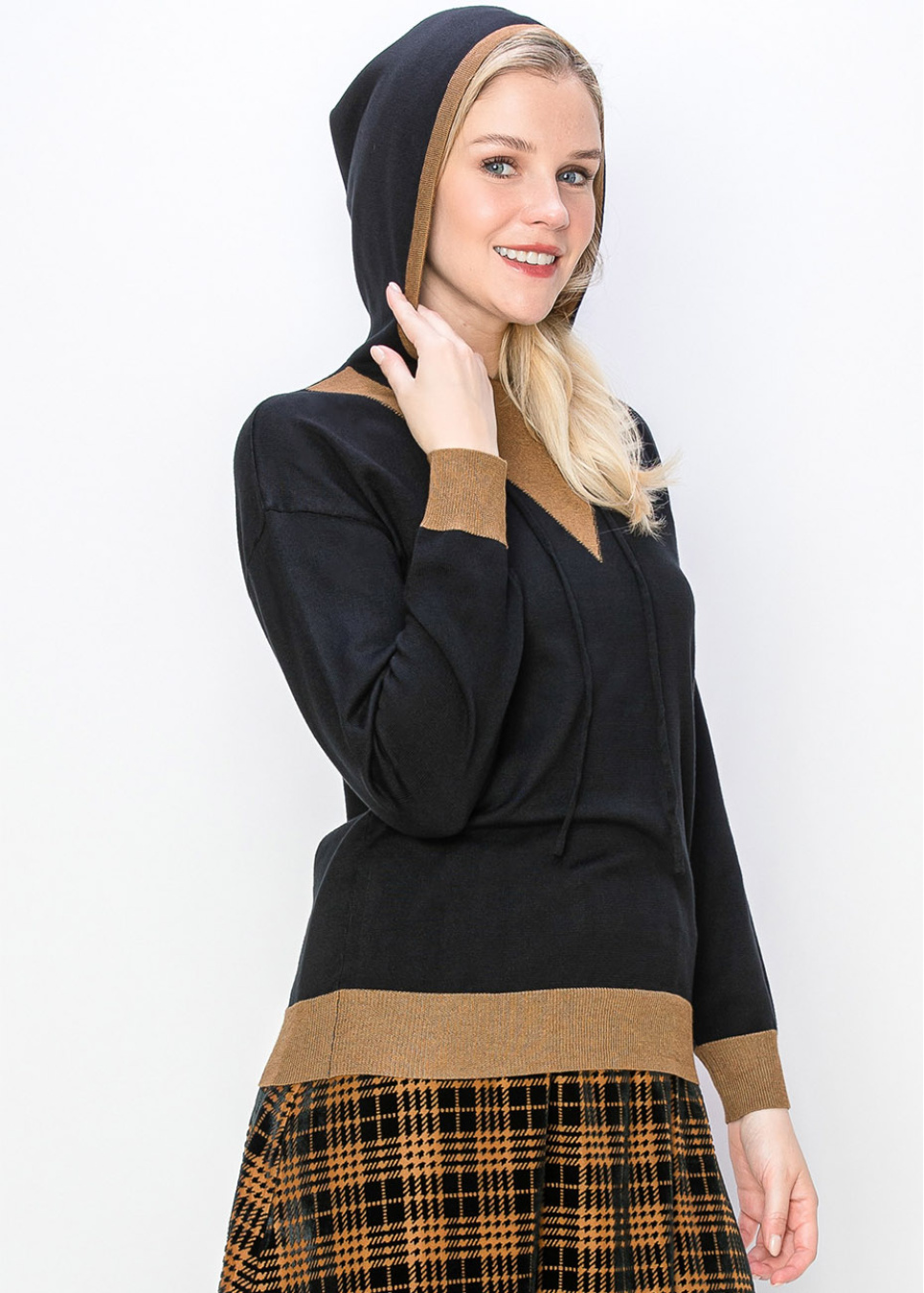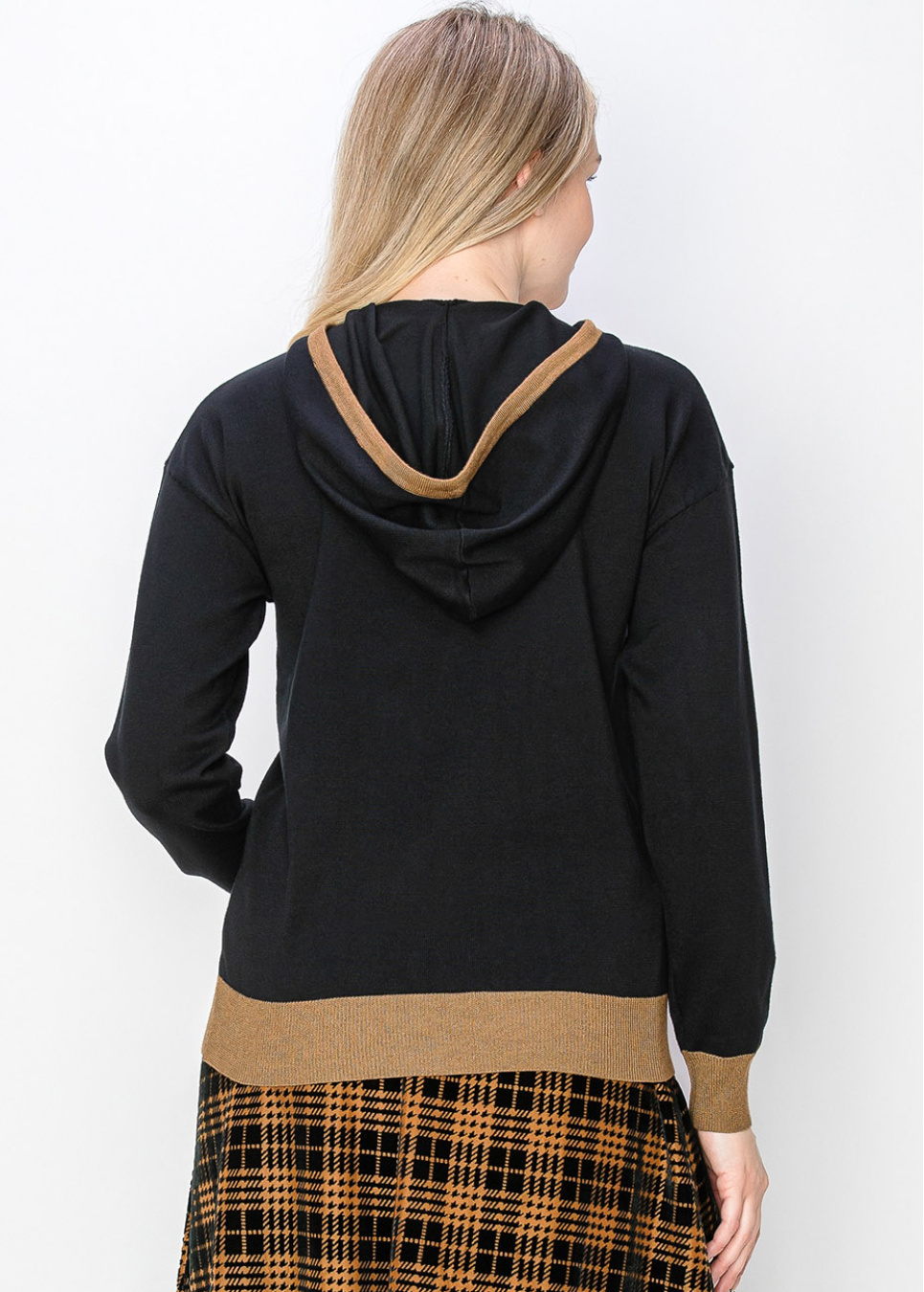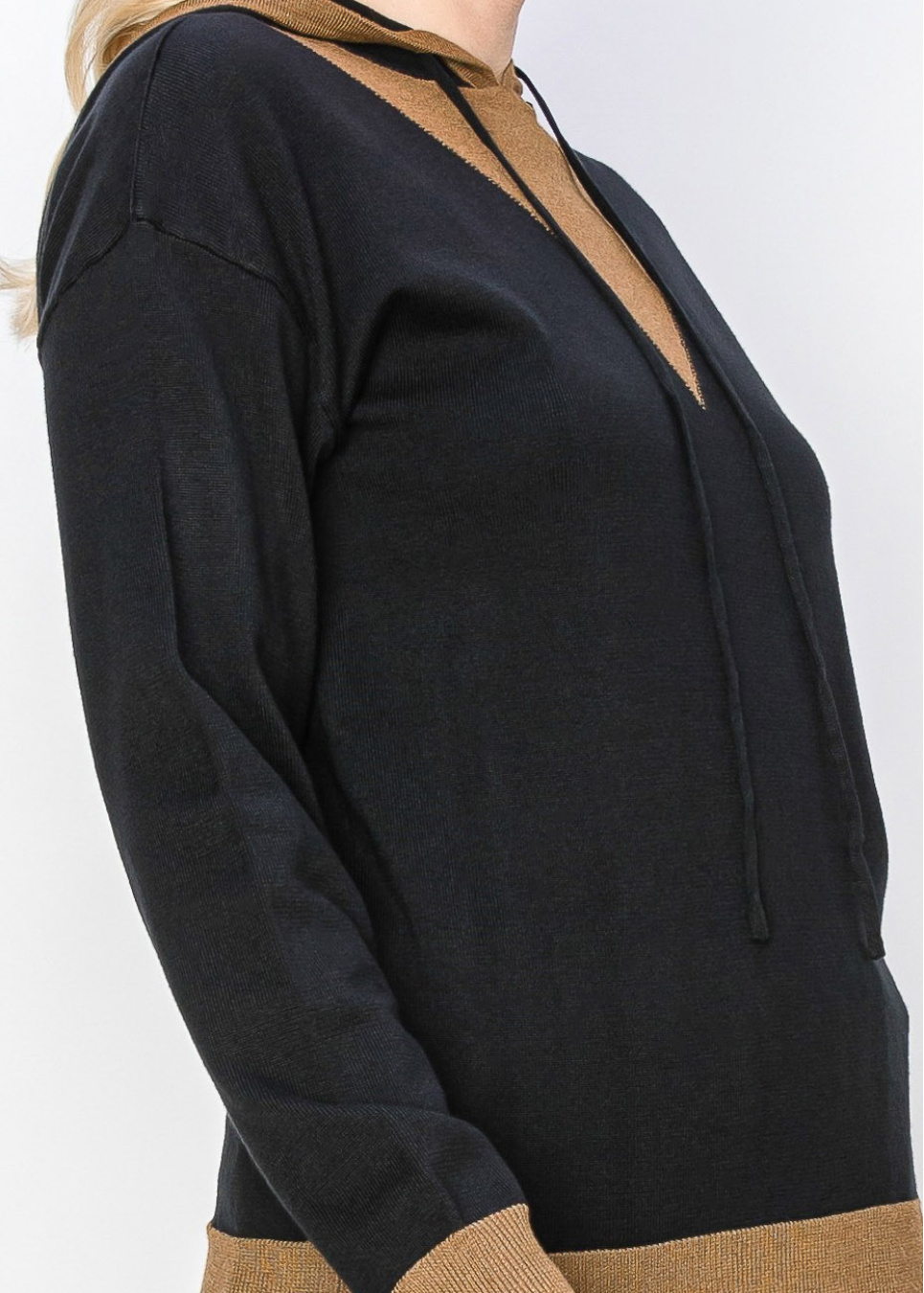 Two-Tone Black Hoodie with Camel Trim
