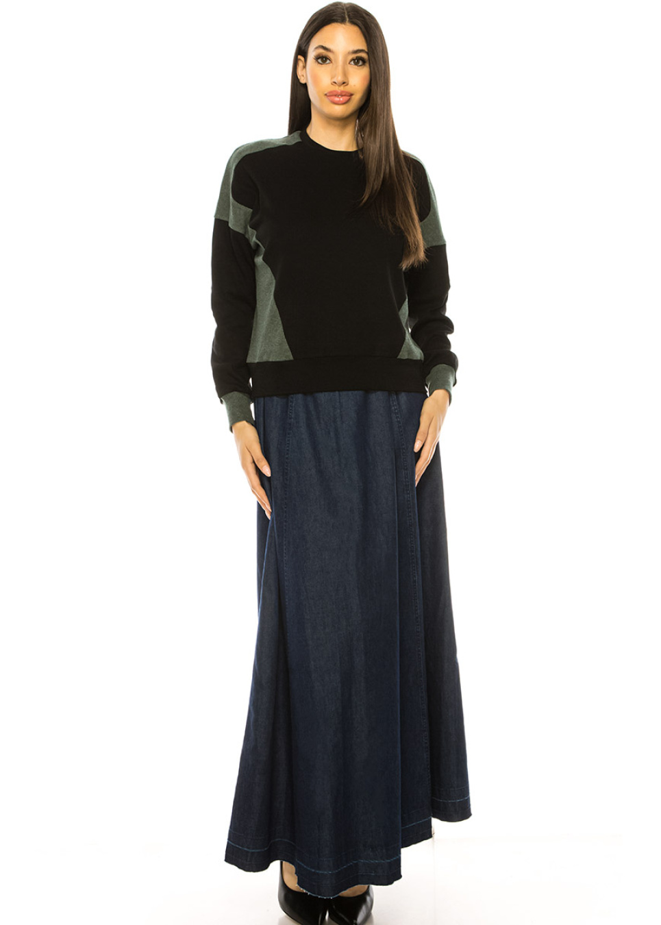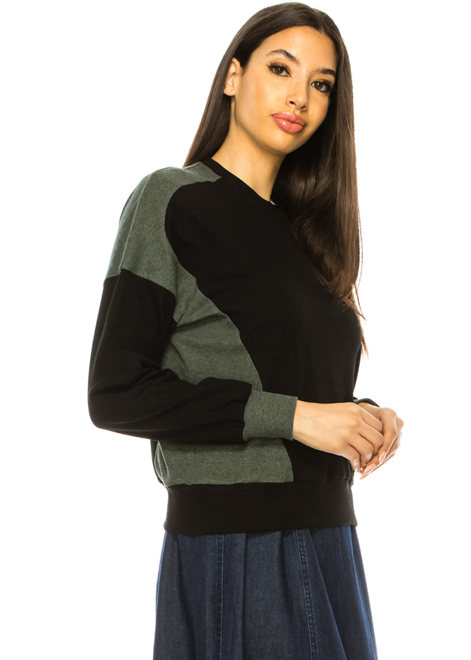 Two-Tone Long Sleeve T-Shirt In Black & Green