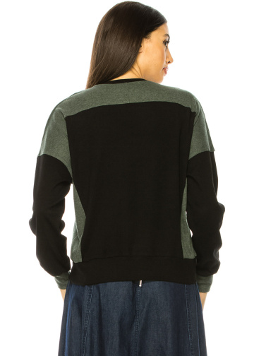 Introducing the perfect blend of comfort and style with this black and green two-tone long sleeve t-shirt. The dropped shoulder line and elastic cuffs and hem create a relaxed and comfortable fit, while the unique two-tone design adds a touch of playfulness and fashion-forwardness. Whether you're looking for a top to wear while lounging at home or out and about, this top is the perfect choice.