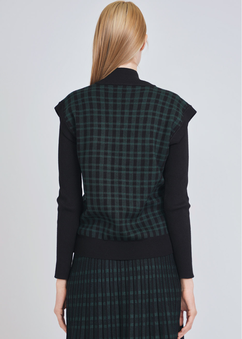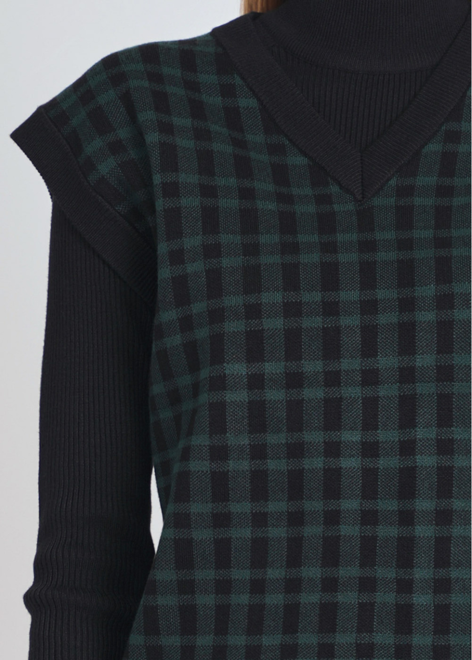 V-Neck Green Checkered Accent on Black Vest