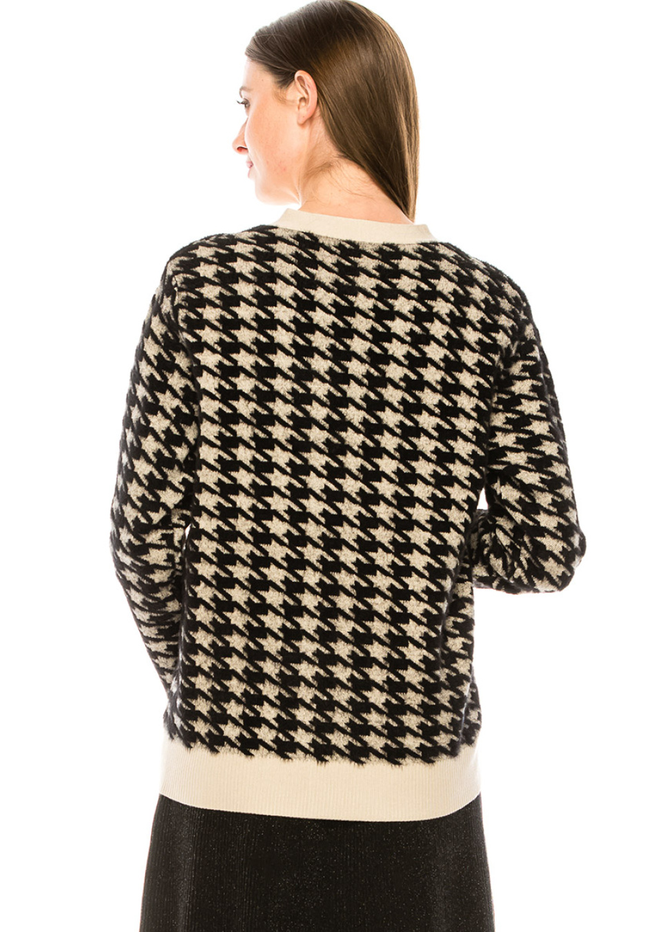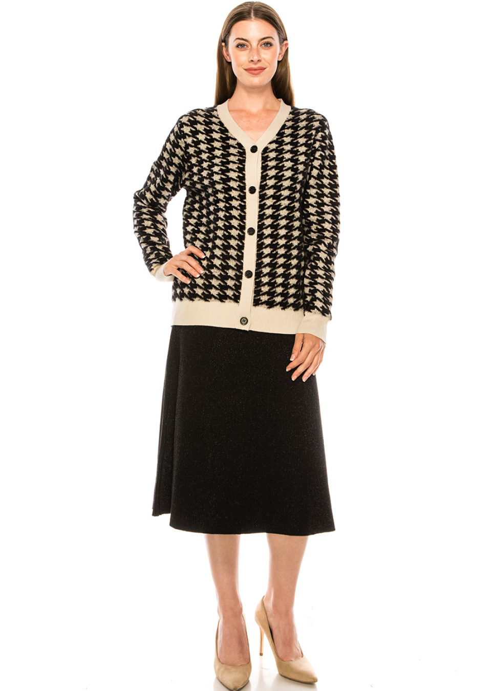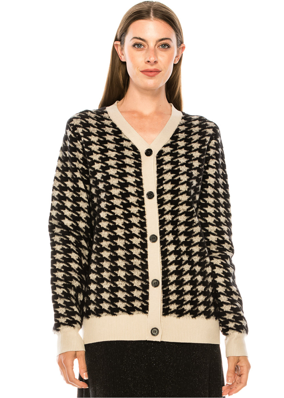 Be effortlessly classy with this cardigan over any of your outfits. Houndstooth print and light edges give the item its striking looks. High-quality materials and a thought-out cut take care of your comfort.