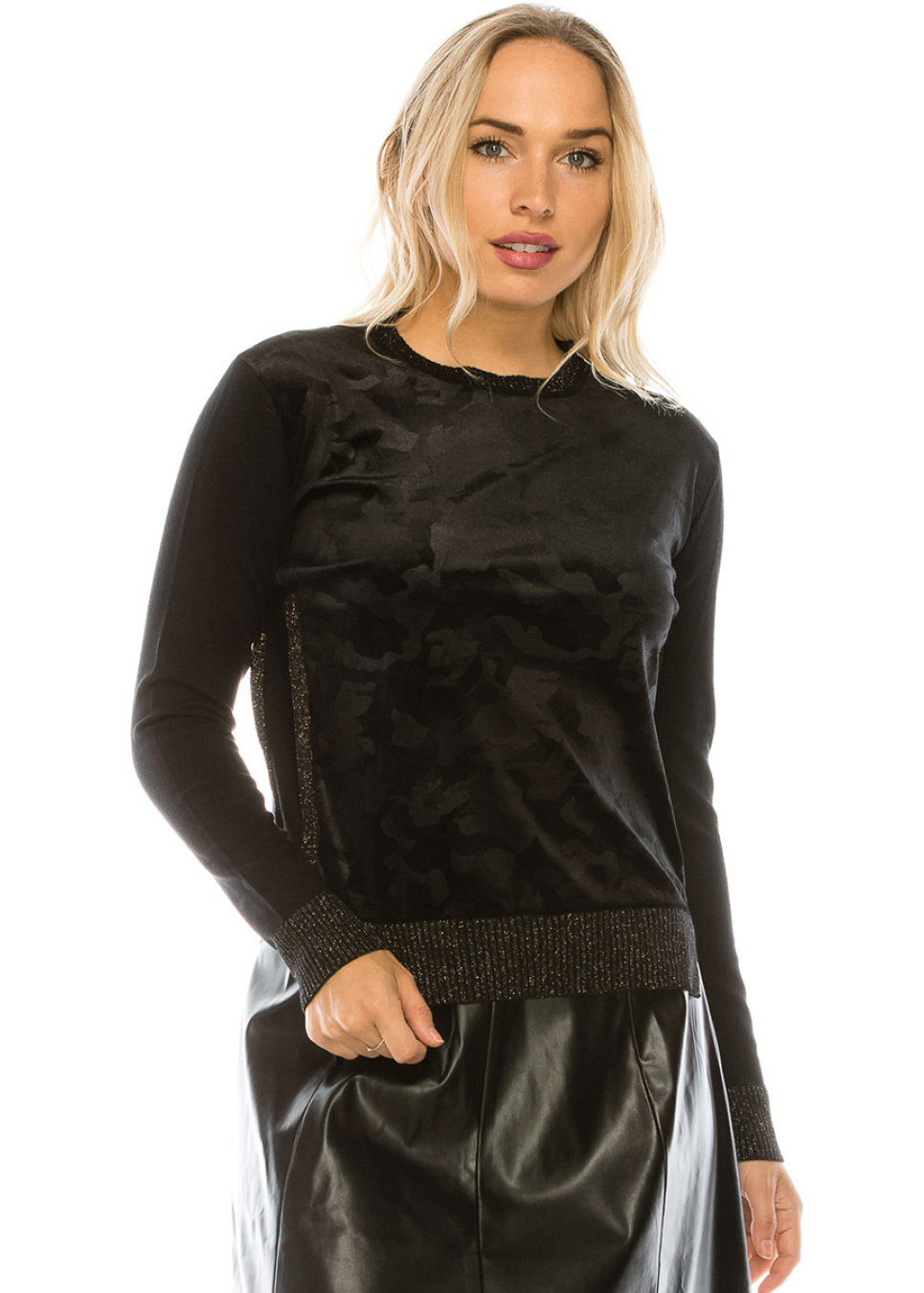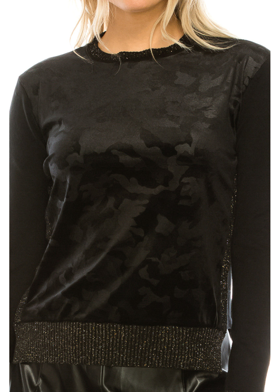 VELVET BLACK CAMO INSERT KNIT TOP