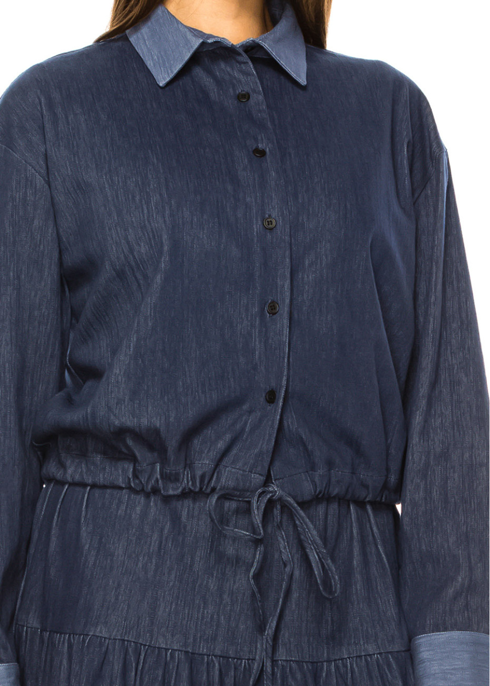 Black long-sleeve shirt jacket with cuffed hem