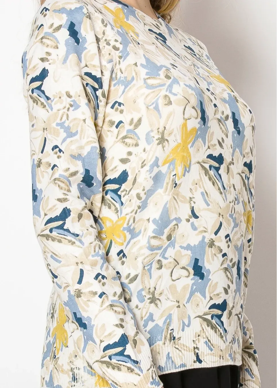 Watercolor Floral Knit Sweater – Olive Trim