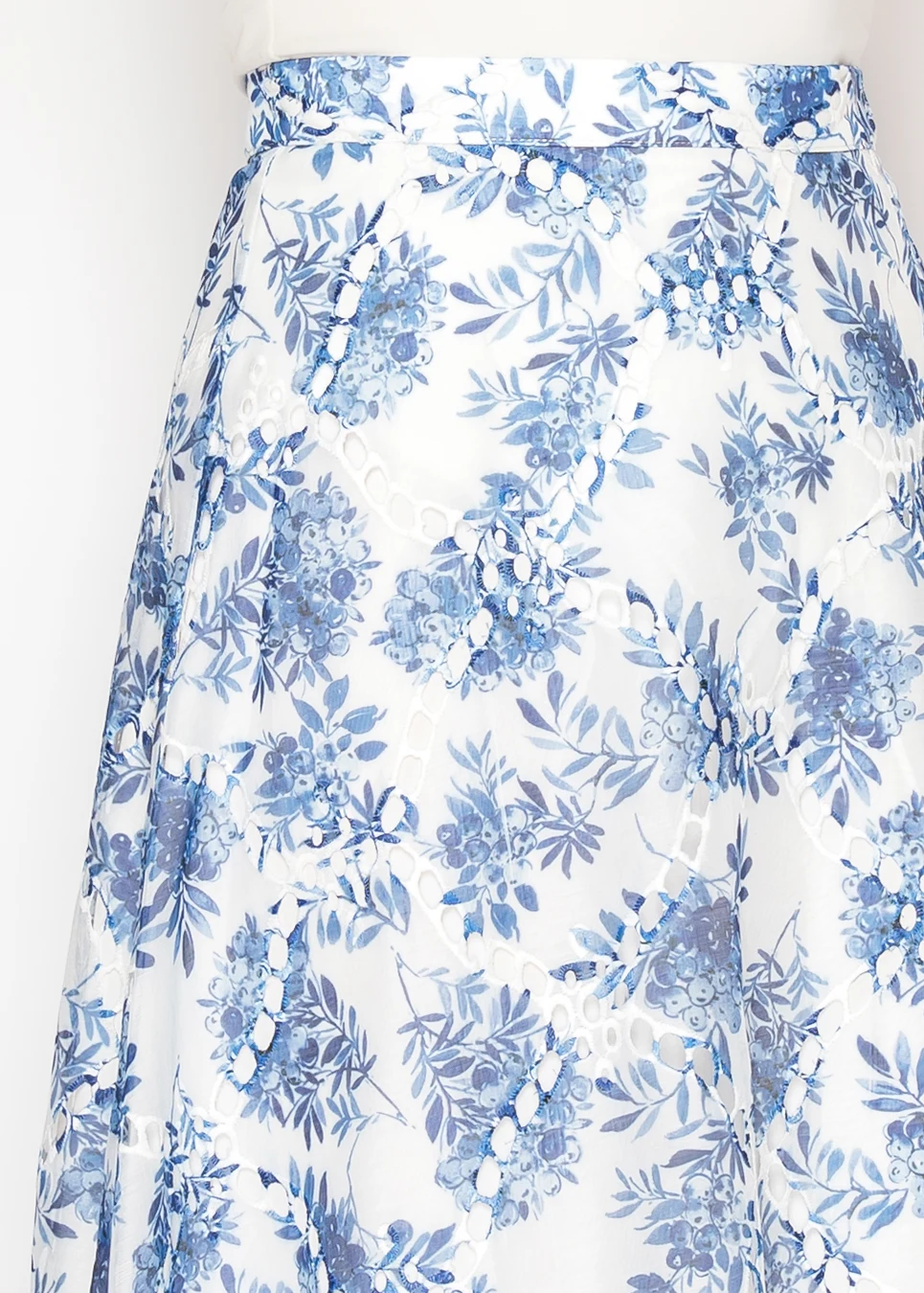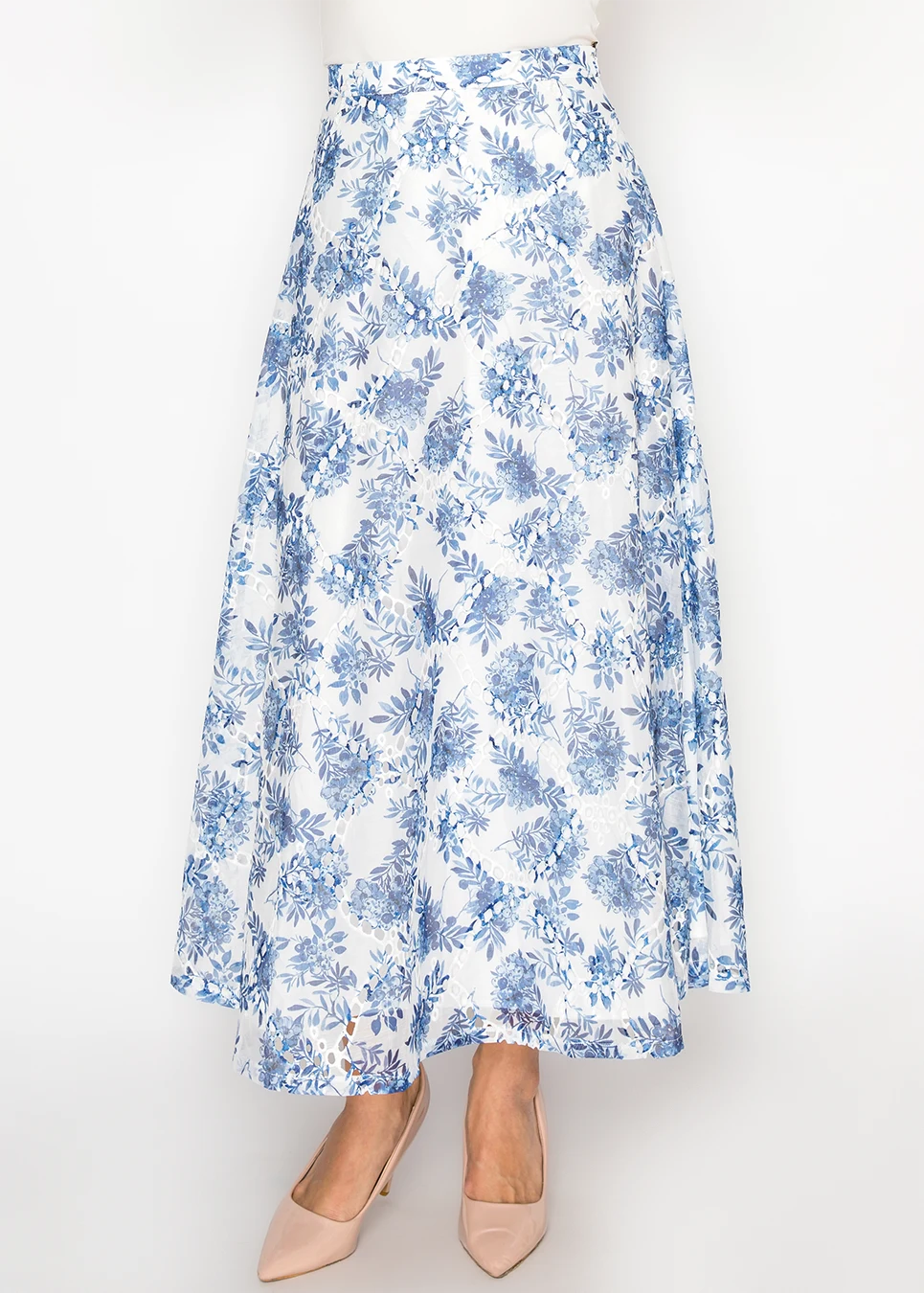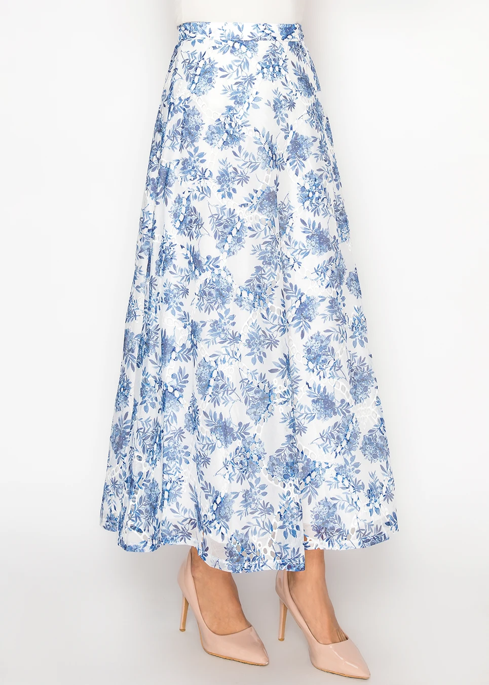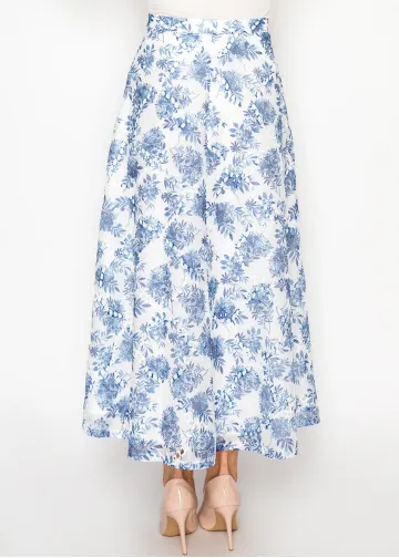 White A-Line Skirt with Blue Floral Print
