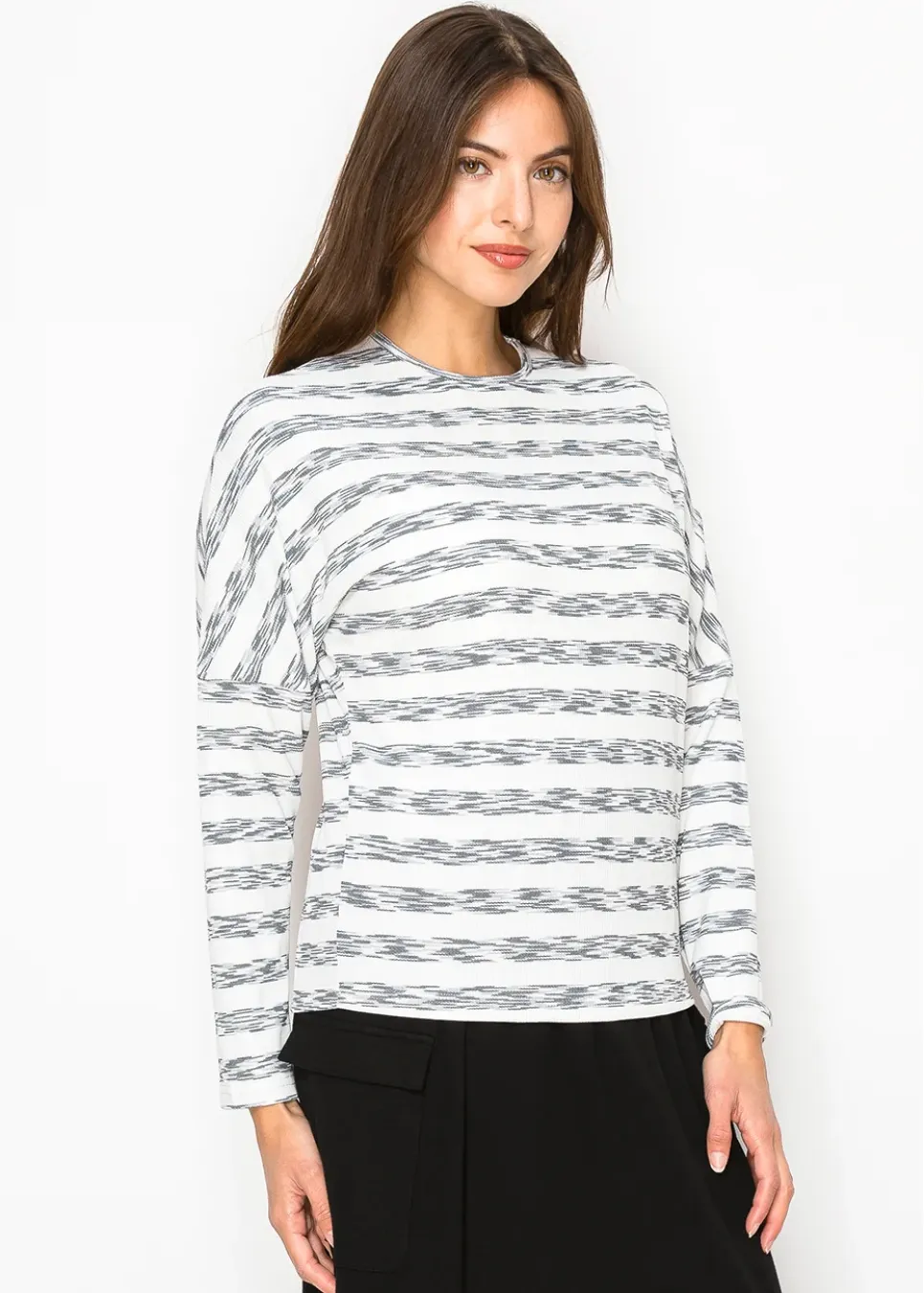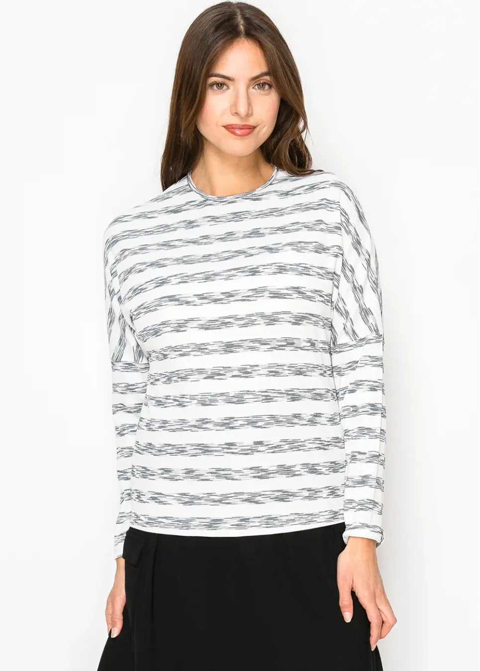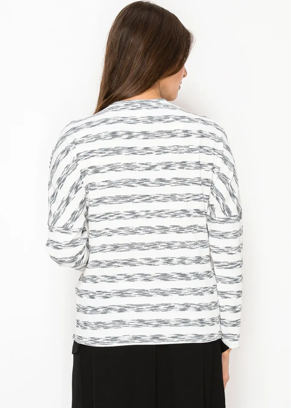 White & Black Streaked Long Sleeve Tee