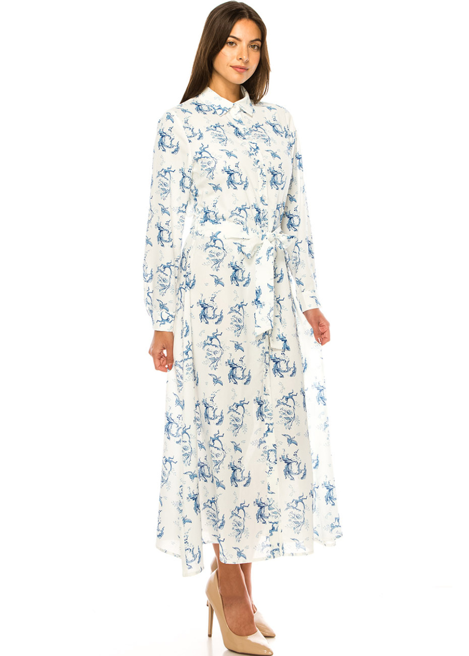 White Azure Blossom Maxi Dress