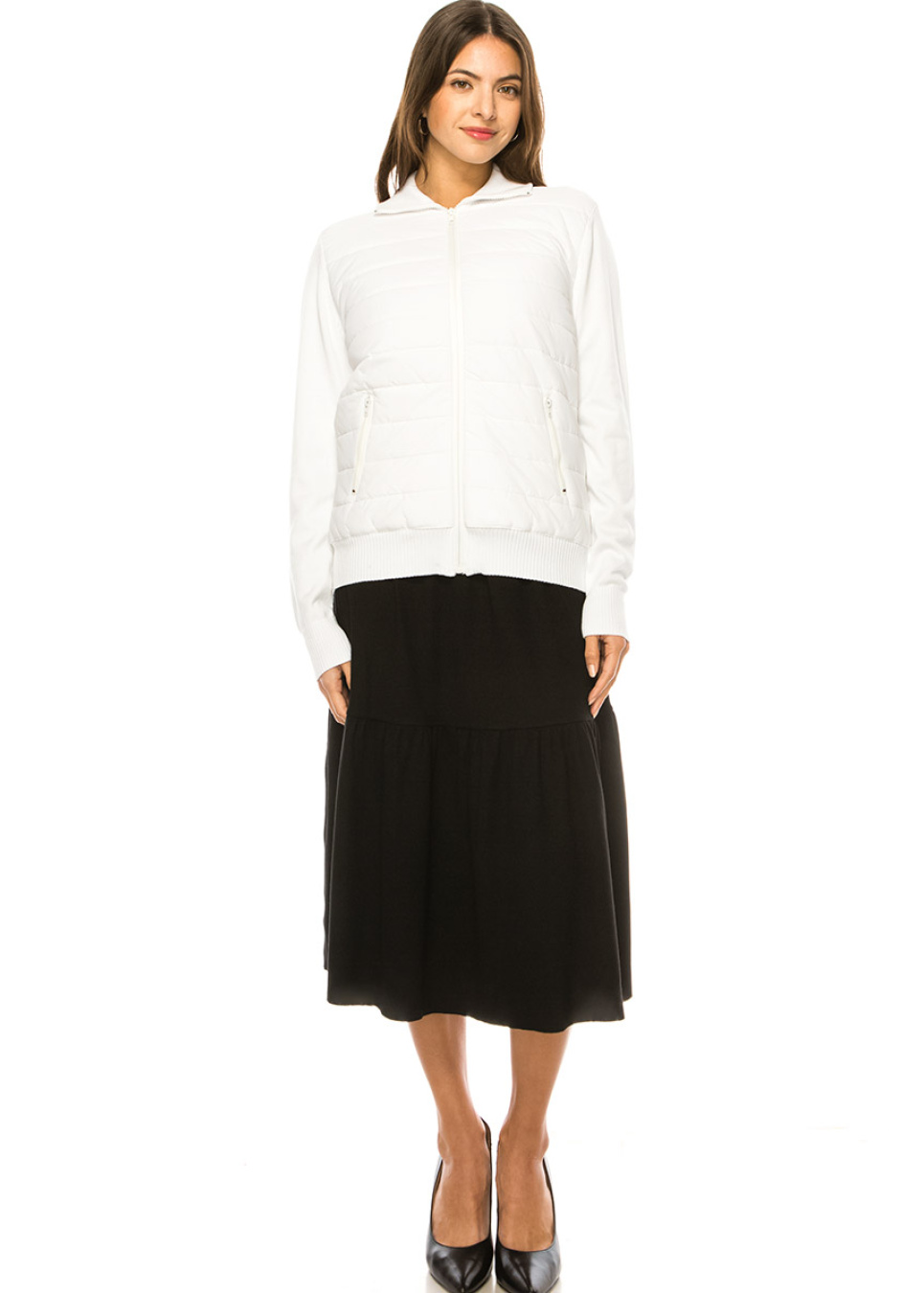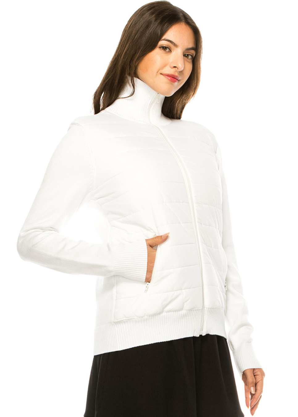This white zip-up cardigan is crafted from high-quality and warm material, designed to keep you cozy. The addition of pockets makes this cardigan more functional and practical, while the classic shirt collar adds a touch of elegance to the overall design.