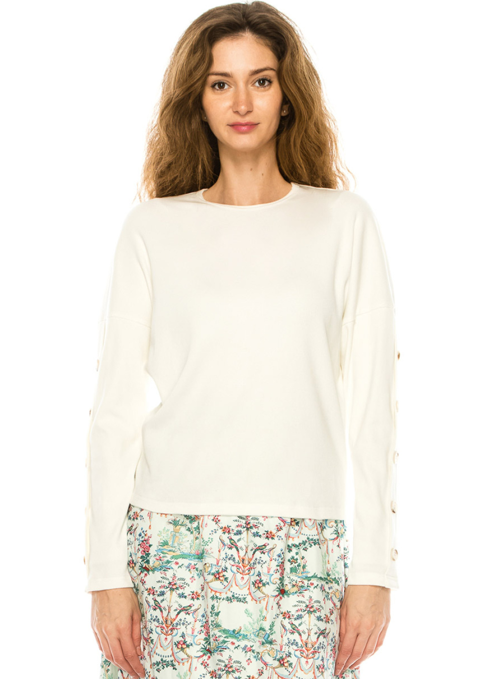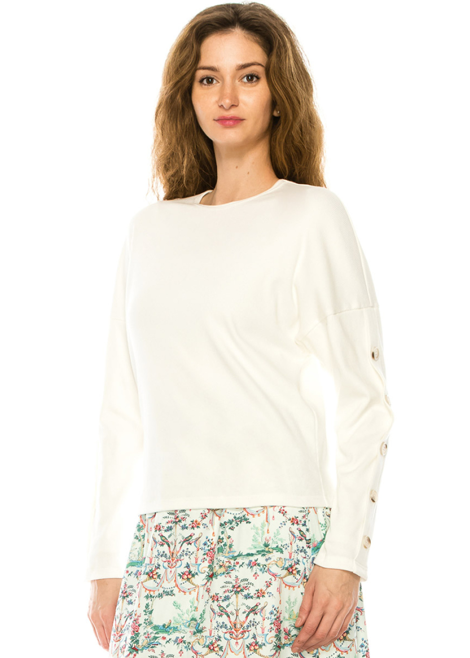 Express your unique sense of style with this fashion-forward long sleeve t-shirt. The dropped shoulder and decorative buttons on the sleeves create a statement look, while the loose fit ensures a comfortable and relaxed fit. Perfect for expressing your individuality, this t-shirt is a must-have for any fashion enthusiast.