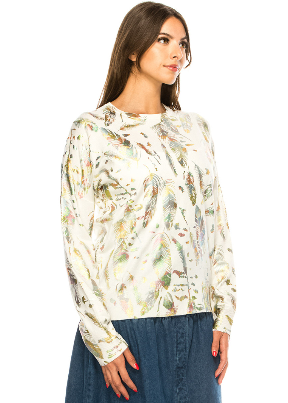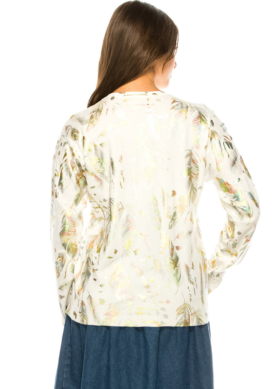 White Feather Print Sweater