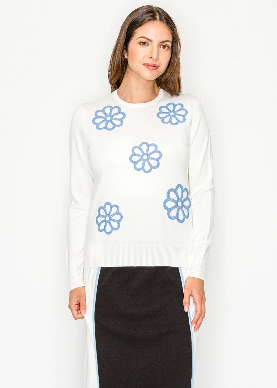 White Floral Appliqué Knit Sweater