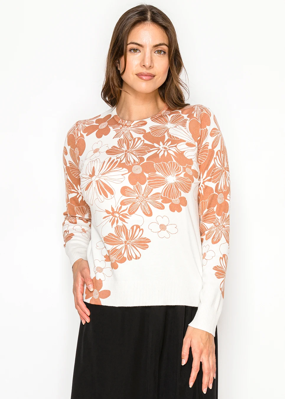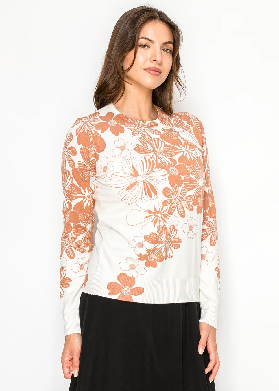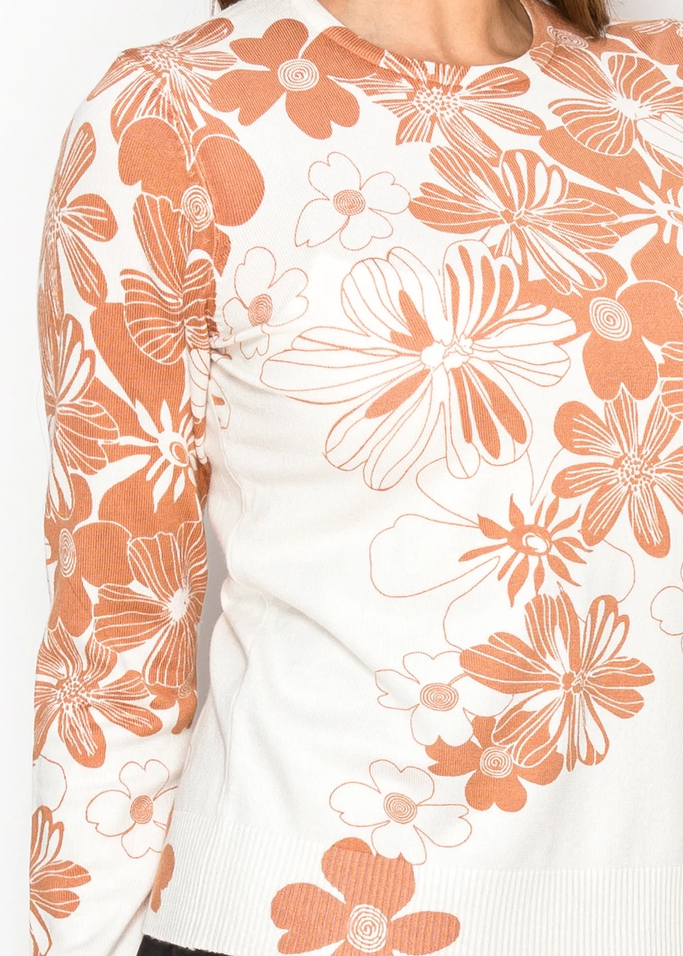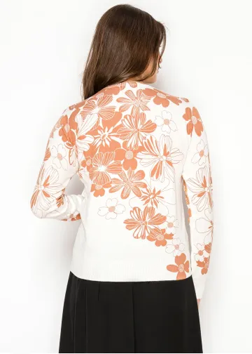 White Sweater with Rust Floral Print