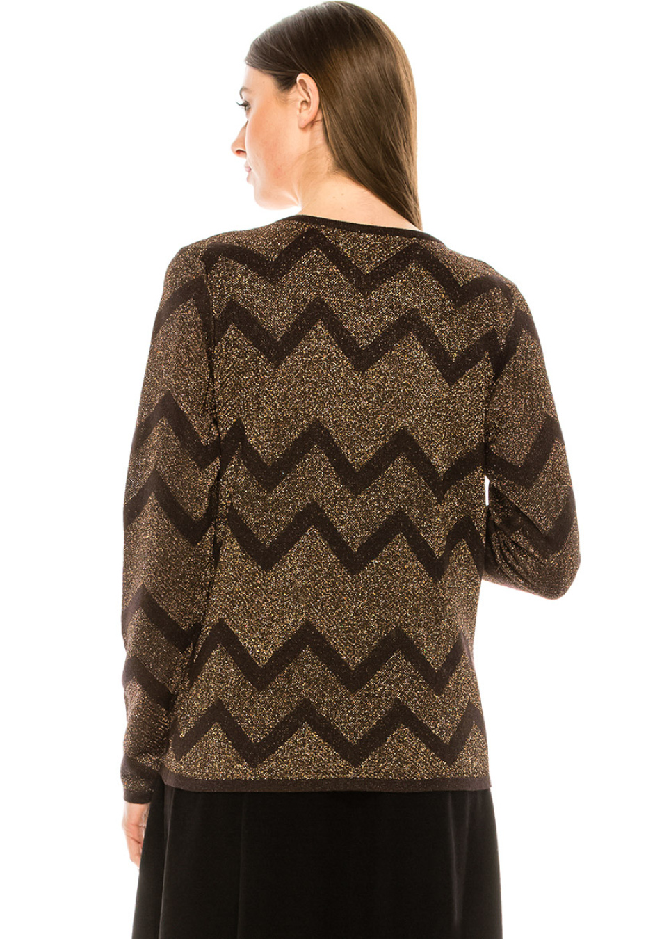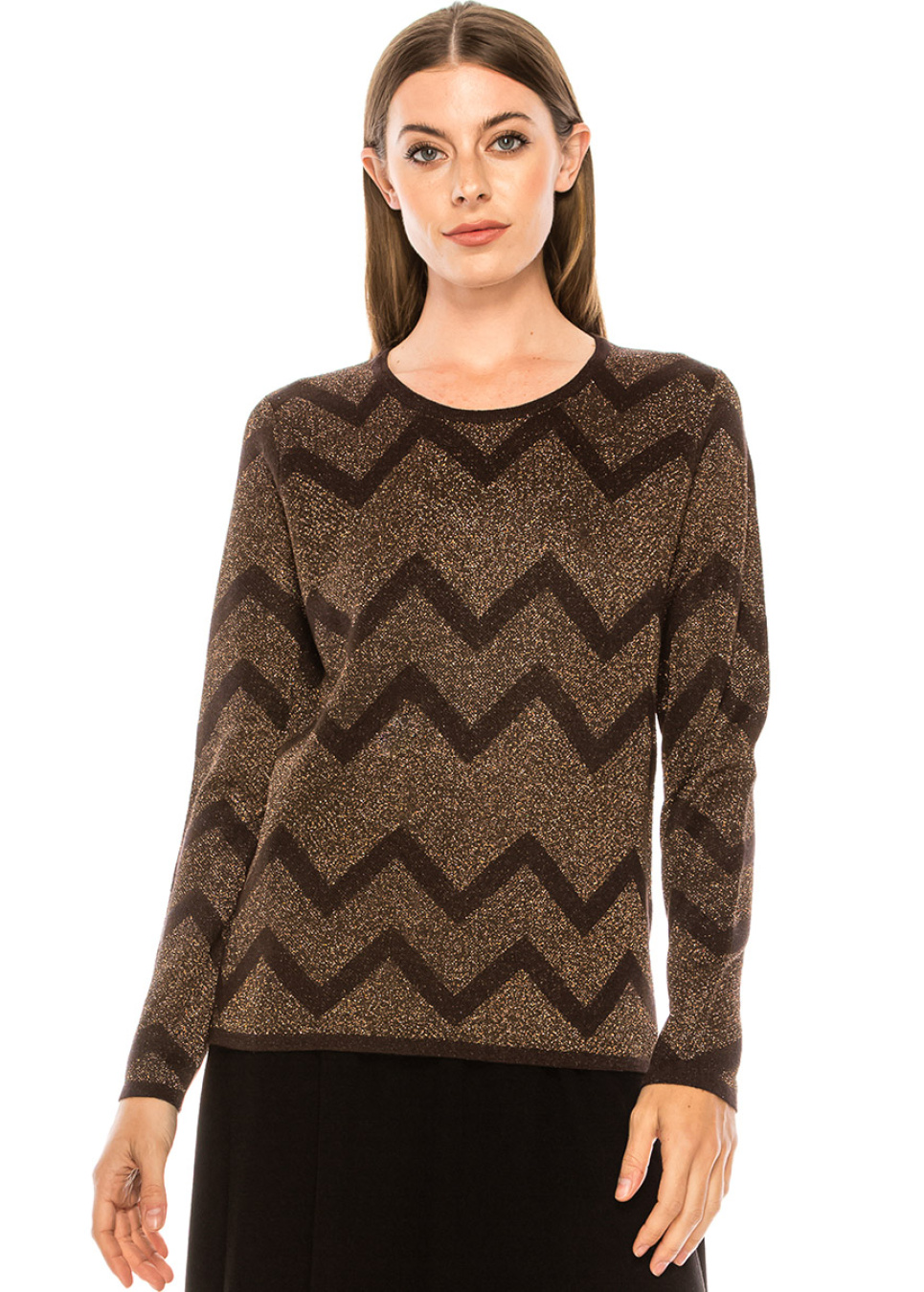 This classic sweater has ribbed trim, long sleeves, and a regular fit. We finished it off by giving it a shiny zigzag design. It's an attractive blend of classic and modern styles.