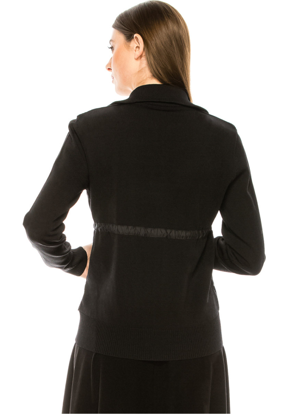 This zip-through cardigan made of high-quality warm material is created to keep you comfy. Waist elastic ensures a perfect fit, pockets make the item more functional, and the shirt collar adds the image a classic touch.