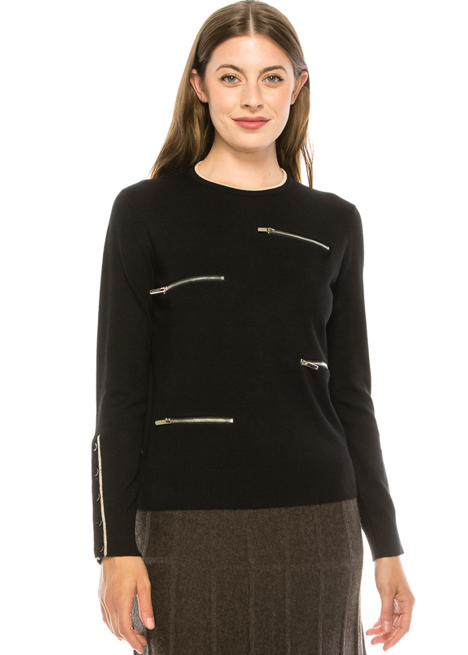 - 4 zipper details across the front