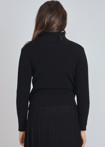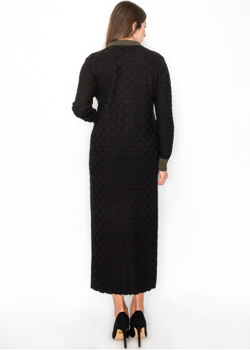 Zippered Black Cardigan with Quilted Elegance & Stand Neck